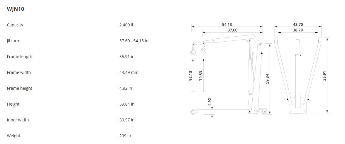Need a workshop crane with parallel legs? Check out our AC Hydraulic Workshop Crane, Parallel Legs, 1.1-Ton WJN10-EUR –